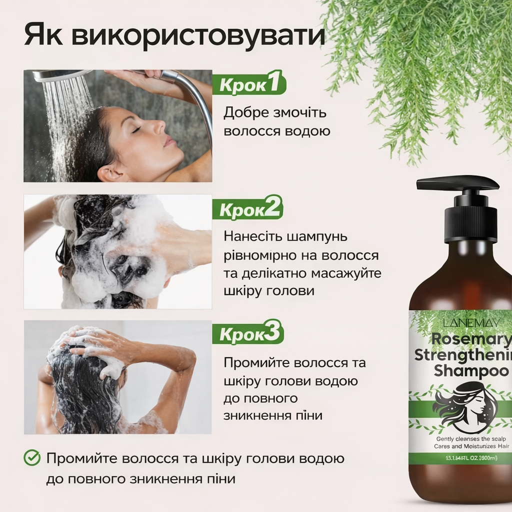💚 Час повернути волоссю здоров’я та красу разом із Rosemary Strengthening Shampoo від LANEMAY.